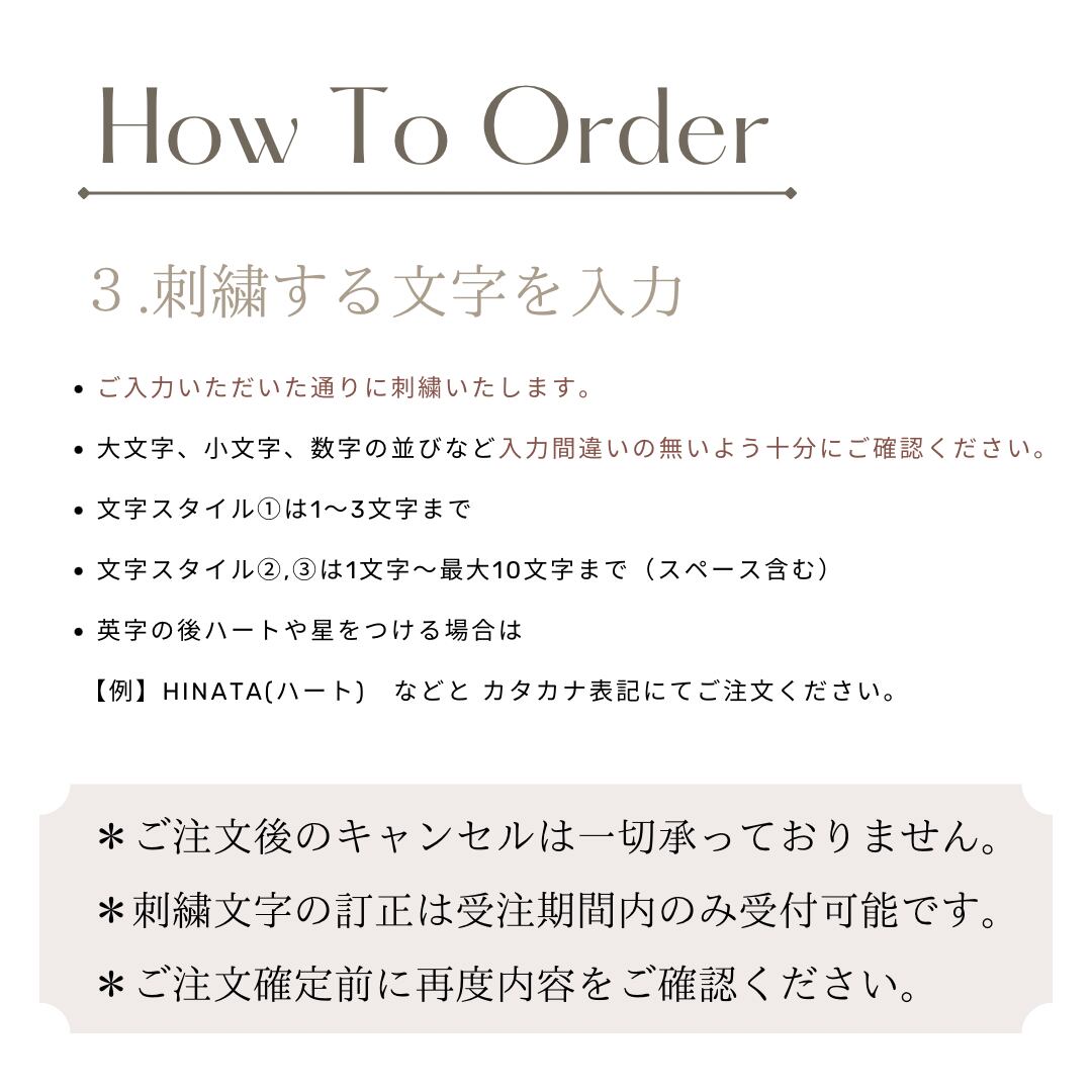 *刺繍文字の訂正はご注文いただいた週の日曜日まで受付可能です。